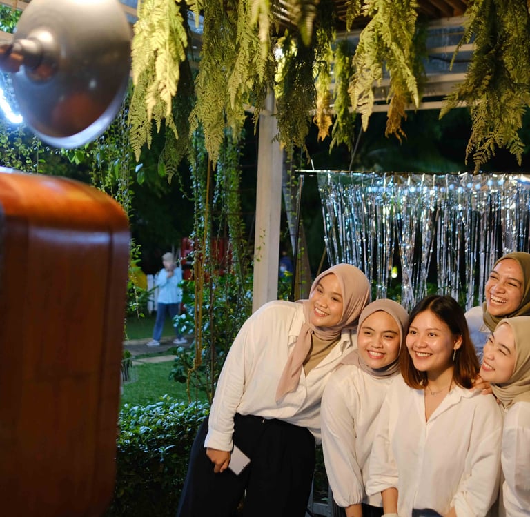 Pengalaman Interaktif yang Mengesankan: Para tamu tidak hanya berfoto, mereka diajak untuk "bermain peran". Dengan properti seperti topi fedora, kacamata bulat, suspender, hingga papan tulis kapur, suasana menjadi lebih hidup dan interaktif. Ini adalah pemecah suasana yang efektif di acara mana pun.